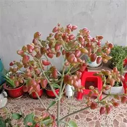 铭月是景天科景天属的多年生亚灌木。多分枝,茎蔓生或直立,高约10-30厘米。…
