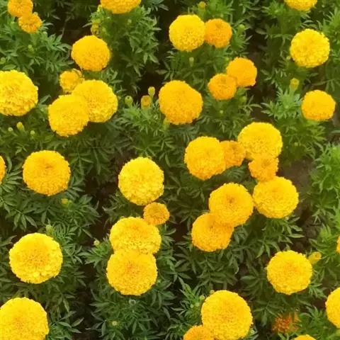 万寿菊是菊科万寿菊属一年生草本植物,别名孔雀菊、缎子花、臭菊花、西番菊、红黄草、小万寿菊、臭芙蓉、孔雀草。万寿菊茎近基部分枝。叶羽状分裂,长5-10厘米,宽4-8厘米,裂片长椭圆形或披针形,具锐齿,上部叶裂片齿端有长细芒,叶缘有少数腺体。头状花序单生,径5-8厘米,花序梗顶端棍棒状。总苞长1.8-2厘米,径1-1.5厘米,杯状,顶端具尖齿。舌状花黄或暗橙黄色,长2.9厘米,舌片倒卵形,长1.4厘米,基部成长爪,先端微弯缺。管状花花冠黄色,长约9毫米,冠檐5齿裂。瘦果线形,被微毛;冠毛有1-2长芒和2-3短而钝鳞片。花期7-9月。万寿菊中国各地均有栽培,在广东和云南南部、东南部已归化,国外原产墨西哥。万寿菊对土壤要求不严,但以肥沃疏松排水良好的土壤为好。耐移栽,种子发芽适温21-24℃,植株生长适合温度为20-29℃。喜温暖和阳光充足的环境,不