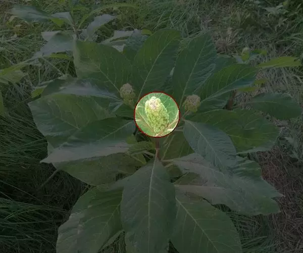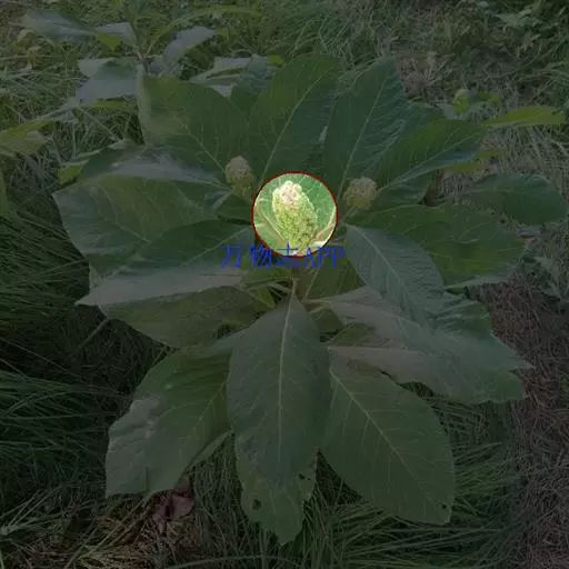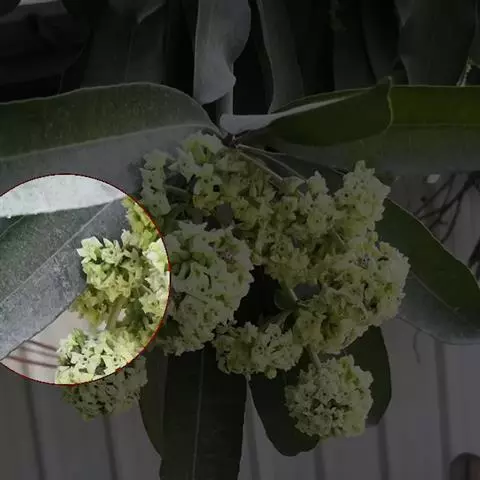 花白色,多朵组成稠密的聚伞花序,顶生,被柔毛;总花梗长4-7cm;花梗长约1mm;花冠高脚碟状,花冠筒长6-10mm,中部以上膨大,内面被柔毛,裂片在花蕾时或裂片基部向左覆盖,长圆形或卵状长圆形,长2-4mm,宽2-3mm;雄蕊长圆形,长约1mm,着生在花冠筒膨大处,内藏;子房由2枚离生心皮组成,密被柔毛,花柱丝状,长4.5mm,柱头棍棒状,顶端2深裂;花盘环状。