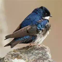 线尾燕,腹部接近纯白色,背部则为深紫色,头部的羽毛是栗色的。