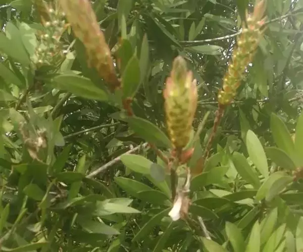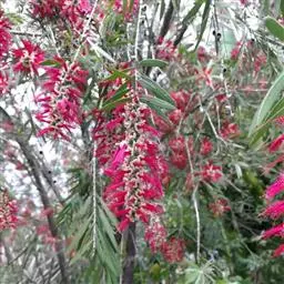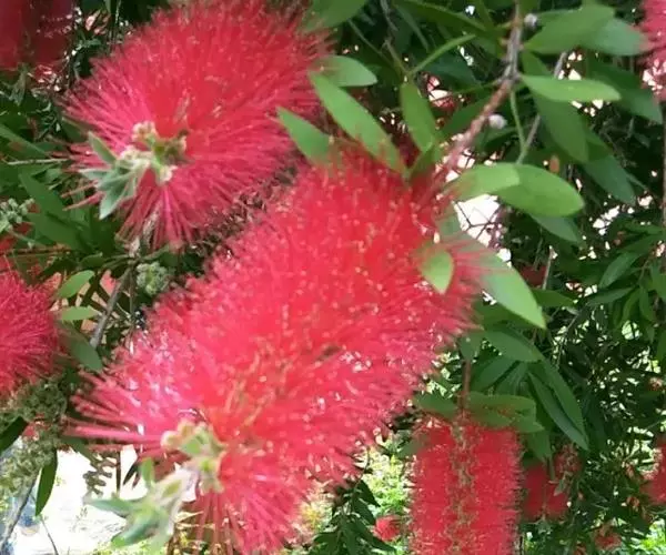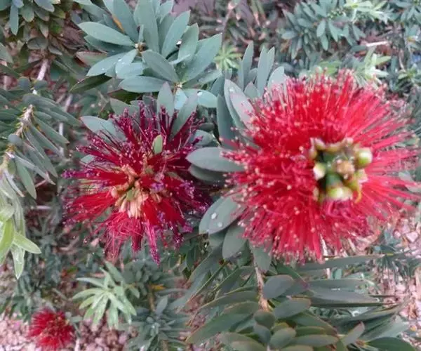 红千层(Callistemon rigidus R. Br.)又称红毛丹树,瓶刷子树、红瓶刷、金宝树等,为桃金娘科的常绿灌木或小乔木,红千层属阳性树种,喜温暖、湿润气候,能耐烈日酷暑,原产澳大利亚。叶披针形,似罗汉松叶终年不凋,四季常青。花稠密,聚生于顶端,花期6-8月,花形极为奇特呈穗状,且色泽艳丽,可作插花,同时也是庭院观花、行道景观、小区绿化的首选树种,亦可作防风林、绿化林,或盆栽修剪成型后制成高档盆景。中国引进已有百年历史,中国台湾、广东、广西、福建、浙江等地均有栽培。红干层适合庭院美化,为高级庭院美化观花树、行道树、园林树、风景树,还可作防风林、切花或大型盆栽,并可修剪整枝成为高贵盆景。