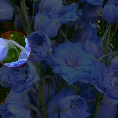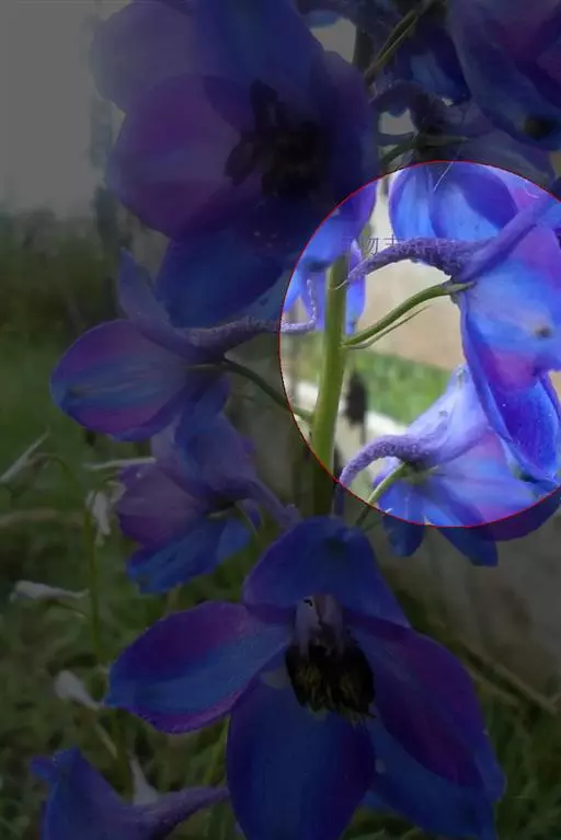 顶生总状花序长6-10厘米;轴及花梗多少密被反曲而紧贴的短柔毛;下部苞片三裂,其他的狭卵形至披针形;花梗长1.5-3厘米;小苞片生花梗中部或下部,长3-5毫米,宽0.5-0.8毫米;萼片蓝紫色,外面被短柔毛,上萼片高盔形,高2-2.6厘米,自基部至喙长1.7-2.2厘米,下缘稍凹,喙不明显,侧萼片长1.5-2厘米;花瓣无毛,瓣片长约1.1厘米,唇长约6毫米,微凹,距长2-2.5毫米,通常拳卷;雄蕊无毛或疏被短毛,花丝有2小齿或全缘;心皮3-5,子房疏或密被短柔毛,稀无毛。蓇葖长1.5-1.8厘米;种子长3-3.2毫米,三棱形,只在二面密生横膜翅。