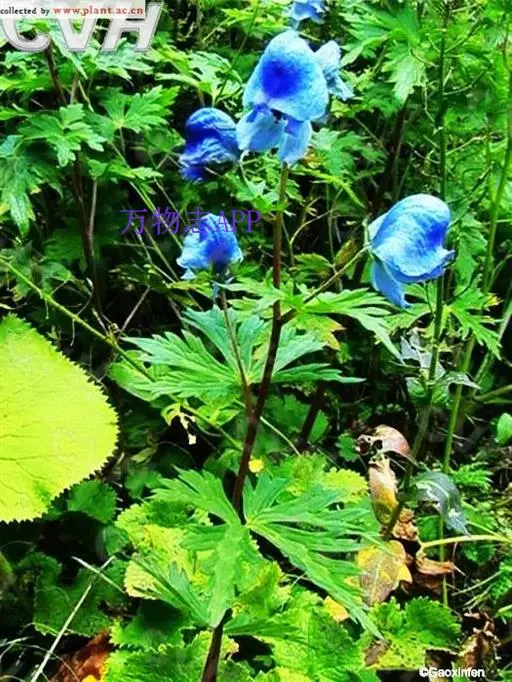 与乌头的区别:茎和叶背面密被短柔毛。叶的中央全裂片顶端急尖。