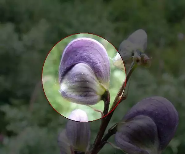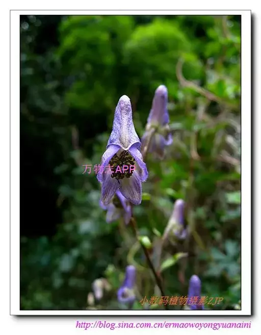 与乌头的区别:花序轴和花梗有开展的柔毛。叶的中央裂片菱形,顶端急尖。