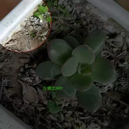 一年生草本植物,高数寸至尺许。茎带紫红色,有纵棱。叶互生,作复瓦状排列,形成二行,很似羽状复叶,叶片矩圆形,长二、三分,全绿,先端尖或钝,基部圆形,几无叶柄。夏秋沿茎叶下面开白色小花,无花柄。花后结扁圆形小果,形如小珠,排列于假复叶下面。