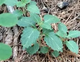 多年生草本;根茎木质,疙瘩状,粗达3厘米以上,向下密生纤维状须根。茎曲折,直立,高0.4-1(1.5) 米,自下部多分枝,钝四稜形,具四槽,褐色,具细条纹,沿稜上密被下曲具节白色疏柔毛。茎叶三角状阔卵形或阔卵形,长3-5.5厘米,宽2.5-5厘米,先端锐尖或钝,基部阔楔形,骤然渐狭下延,边缘在基部以上具粗大圆齿状锯齿,齿尖具硬尖,坚纸质,上面橄榄绿色,散布具节短柔毛,下面淡绿色,沿脉上被具节白色疏柔毛,侧脉约4对,与中脉在上面微凹陷下面隆起,平行细脉在下面明显;叶柄长0.5-3.5厘米,上部具宽翅,腹凹背凸,密被具节白色疏柔毛。狭圆锥花序长6-10厘米,花茎及分枝顶端及上部茎叶腋内着生,由于上部茎叶变小呈苞叶状,因而整体常呈复合圆锥花序,花序由具3-5花的聚伞花序组成,聚伞花序具梗,总梗长达5毫米,与较短的花梗及序轴密被短柔毛;苞叶卵圆形,变小,近无柄,边缘具疏齿至近全缘;小苞片线形或线状披针形,微小,长1-1.5毫米,具缘毛。花萼钟形,长约2毫米,外被斜上细毛,内面无毛,萼齿5,近相等或微呈3/2式,果时花萼稍增大,长达5毫米,脉纹显著。花冠淡红至青紫色,长约8毫米,外被短柔毛及腺点,内面无毛,冠筒长约3.5毫米,基部上方浅囊状,至喉部直径约1.5毫米,冠檐二唇形,上唇外反,长约3毫米,宽达4毫米,先端具相等4圆裂,下唇阔卵圆形,长4.5毫米,宽3.5毫米,内凹,舟形。雄蕊4,内藏,花丝扁平,中部以下具髯毛。花柱丝状,内藏,先端相等2浅裂。花盘环状。成熟小坚果未见花期8-10月。