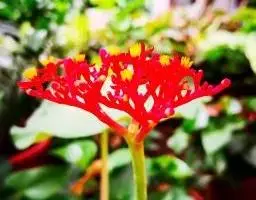 虎刺梅:别称铁海棠,是蔓生灌木植物。茎多分枝,长60-100厘米,直径5-10毫米,具纵棱,密生硬…
