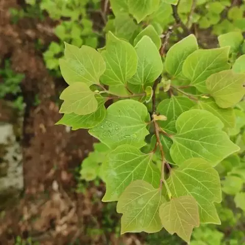 落叶灌木或小乔木,高2-8米,幼枝条黄绿色,无毛。冬芽卵形,紫褐色,芽鳞具脊;外面芽鳞无毛,内面芽鳞背面被绢质柔毛,内面无毛。叶互生,椭圆状披针形,长6-14厘米,宽1.5-3.5厘米,先端渐尖,基部楔形,近革质,上面绿色无毛,下面苍白色,沿脉上被疏柔毛,羽状脉,侧脉每边8-10条。伞形花序2-3生于冬芽基部。雄花序有花3-4朵,花梗长3-5毫米,花被片6,能育雄蕊9。雌花序有花2-7朵;花梗长3-6毫米;花被片6;退化雄蕊9;子房卵形,无毛,花柱长1毫米,柱头头状。果球形,直径约8毫米,成熟时黑色,果托直径约2毫米;果梗长0.5-1.5厘米,被微柔毛或无毛。花期3-4月,果期9-10月。