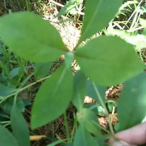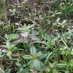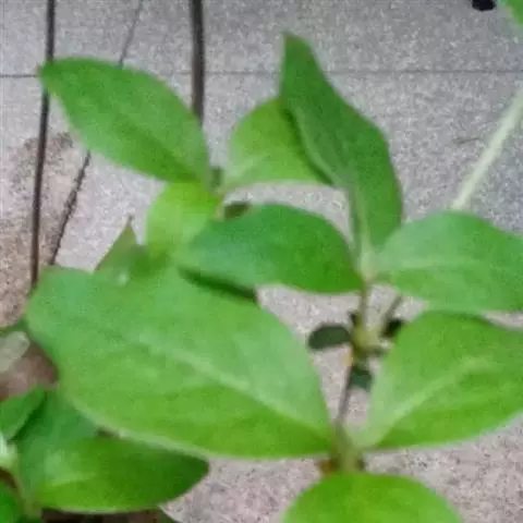 主茎上的叶小而互生,分枝上的叶对生,具柄,柄长达2.5厘米,微被短刺毛;叶片卵形,卵状矩圆形,阔披针形或披针形,长1-2.8(5.2)厘米,宽0.8-1.5(3.2)厘米,顶端急尖,基部微心形或较圆钝,全缘,不反卷,绿色,密被短柔毛。