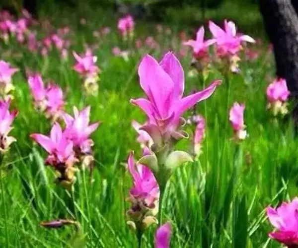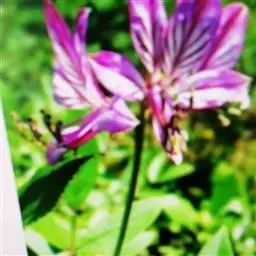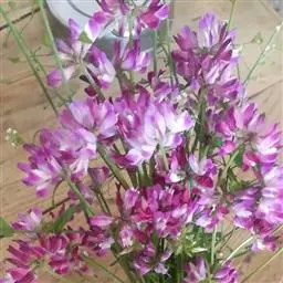 总状花序生5-10花,呈伞形;总花梗腋生,较叶长;苞片三角状卵形,长约0.5毫米;花梗短;花萼钟状,长约4毫米,被白色柔毛,萼齿披针形,长约为萼筒的1/2;花冠紫红色或橙黄色,旗瓣倒卵形,长10-11毫米,先端微凹,基部渐狭成瓣柄,翼瓣较旗瓣短,长约8毫米,瓣片长圆形,基部具短耳,瓣柄长约为瓣片的1/2,龙骨瓣与旗瓣近等长,瓣片半圆形,瓣柄长约等于瓣片的1/3;子房无毛或疏被白色短柔毛,具短柄。