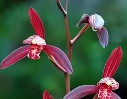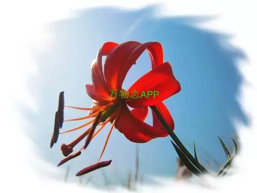 山丹百合 鳞茎卵形或圆锥形,高2.5-4.5厘米,直径2-3厘米;鳞片矩圆形或长卵形,长2-3.5厘米, 宽1-1.5厘米,白色。茎高15-60厘米,有小乳头状突起,有的带紫色条纹。叶散生于茎中部,条形,长3.5-9厘米,宽1.5-3毫米,中脉下面突出,边缘有乳头状突起。花单生或数朵排成总状花序,鲜红色,通常无斑点,有时有少数. 斑点,下垂;花被片反卷,长4-4.5厘米,宽0.8-1.1厘米,蜜腺两边有乳头状突起;花丝长1.2-2.5厘米,无毛,花药长椭圆形,长约1厘米,黄色,花粉近红色;子房圆柱形,长0.8-1厘米;花柱稍长于子房或长1倍多,长1.2-1.6厘米,柱头膨大,径5毫米,3裂。蒴果矩圆形,长2厘米,宽1.2-1.8厘米。花期7-8月,果期9-10月。