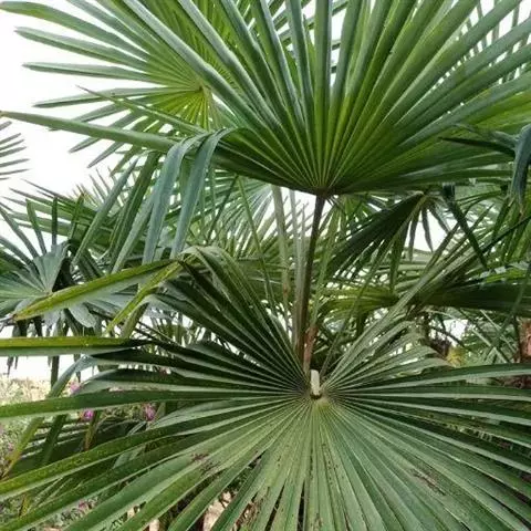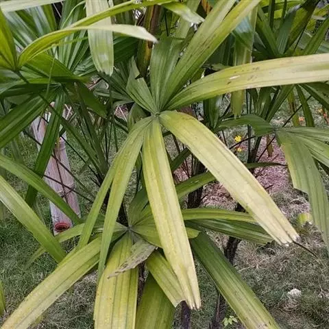 细叶棕竹,灌木,茎细如竹,多数聚生,有网状叶鞘。叶半圆形,掌状深裂,裂片狭长,阔线形,软垂,裂片7…
