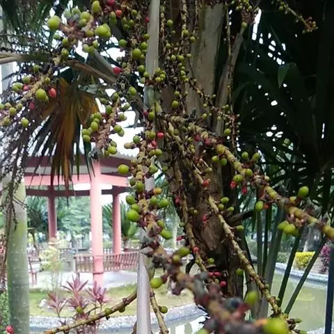 蛇皮果 Voss)是棕榈科,蛇皮果属植物,植株相对较小,雌雄异株,叶羽状全裂,羽片披针形或线状披针形,…