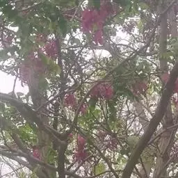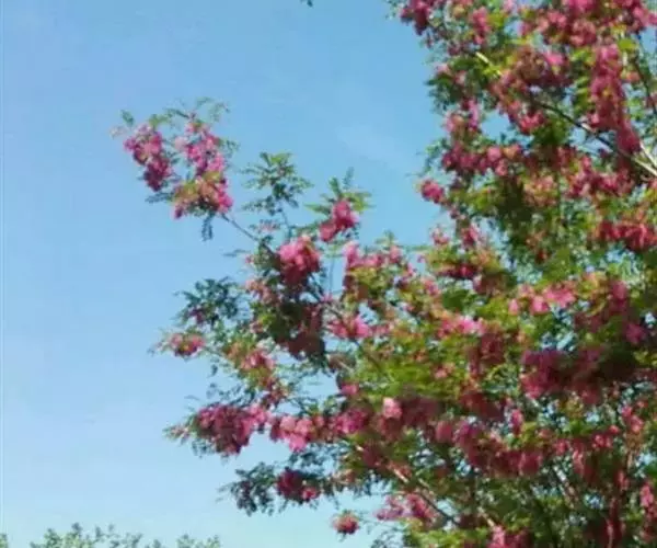红花刺槐花大色美,呈小乔木状,可作行道树。