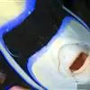 额斑刺蝶鱼,体卵圆形侧扁,有鲜明蓝色轮廓和数条鲜蓝竖纹,全身密布网格状具蓝色边缘的珠状黄点,深蓝色…