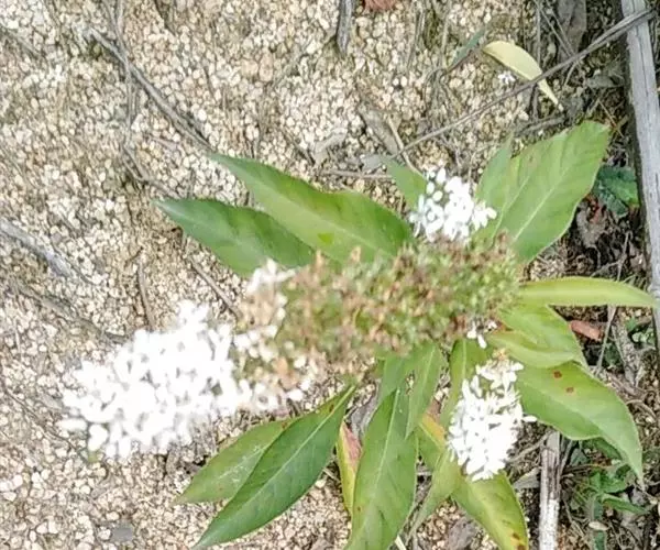 总状花序顶生,盛花期长约6厘米,花密集,常转向一侧,后渐伸长,果时长20-40厘米;苞片线状钻形,比花梗稍长;花梗长4-6毫米;花萼长2.5-3毫米,分裂近达基部,裂片卵状椭圆形,先端圆钝,周边膜质,有腺状缘毛;花冠白色,长5-6毫米,基部合生部分长约1.5毫米,裂片狭长圆形,先端圆钝;雄蕊内藏,花丝基部约1毫米连合并贴生于花冠基部,分离部分长约2毫米,被腺毛;花药长圆形,长约1毫米;花粉粒具3孔沟,长球形 [(29.5-36.5) × (22-26) 微米],表面近于平滑;子房卵珠形,花柱稍粗,长3-3.5毫米。