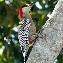 绿啄木鸟是鴷形目啄木鸟科绿啄木鸟属鸟类。雄鸟额和头顶前部辉红色,鲜丽异常;雌鸟头上无红色;嘴尖直,…