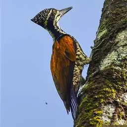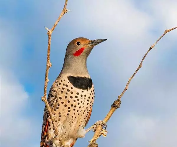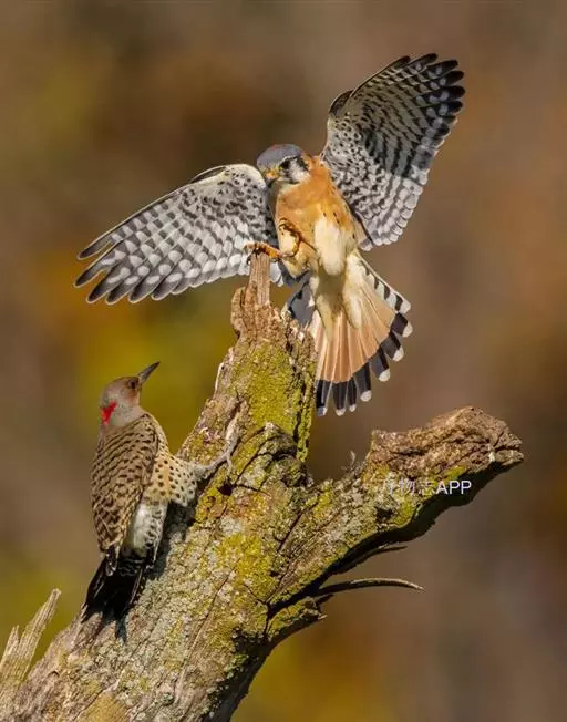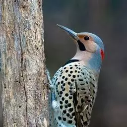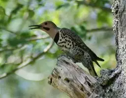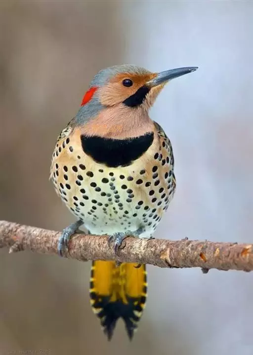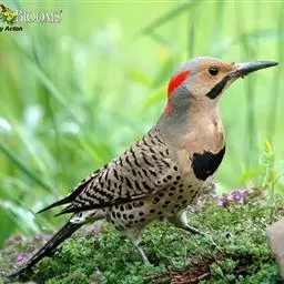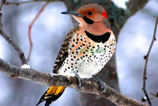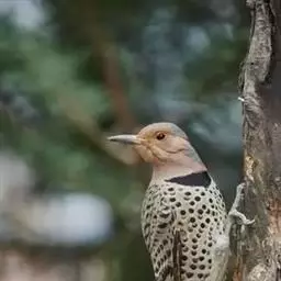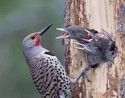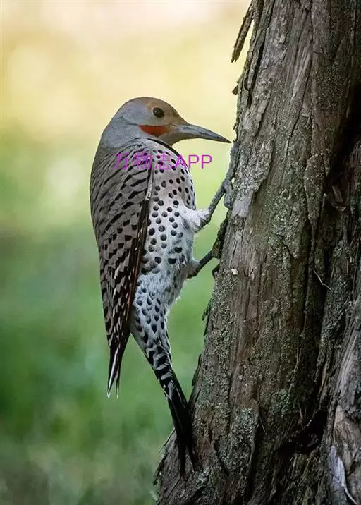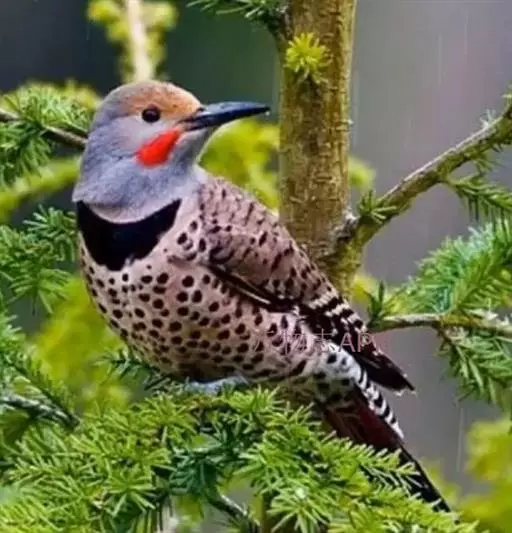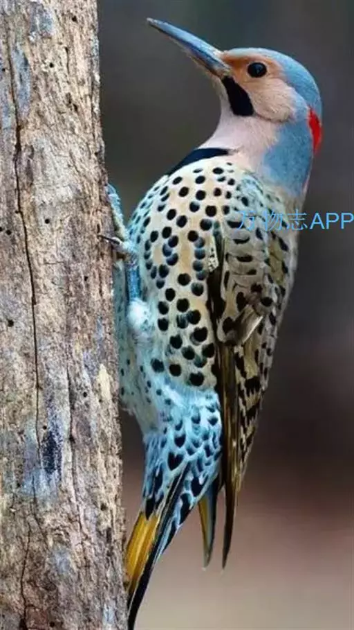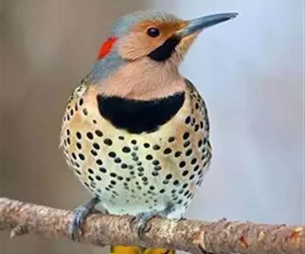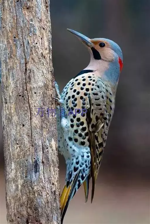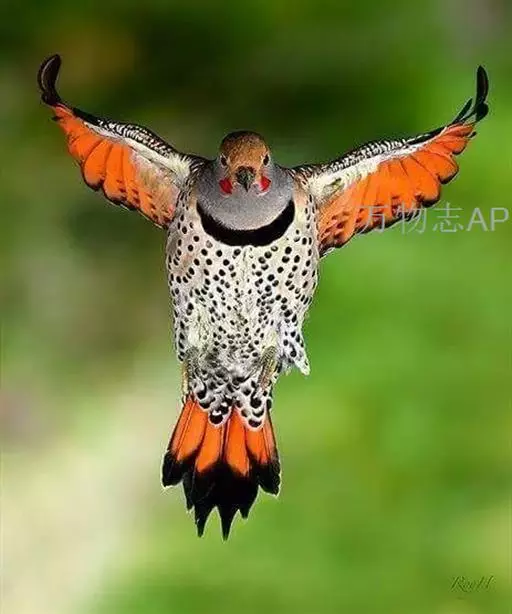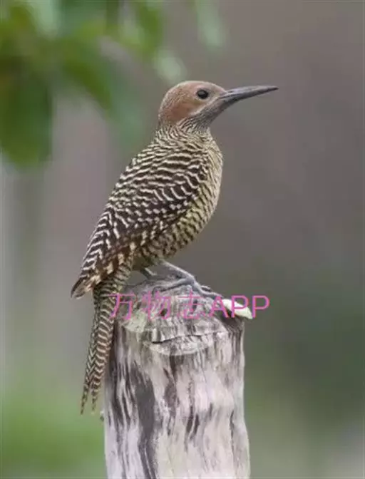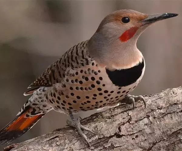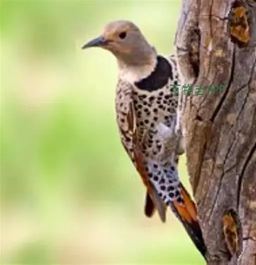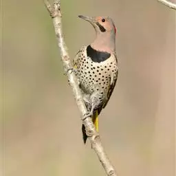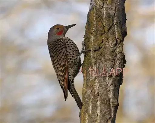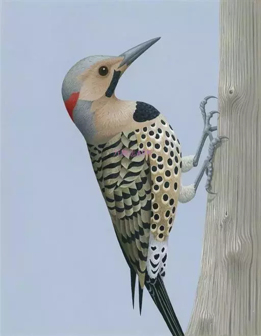 北扑翅鴷(学名:Colaptes auratus):体长30-35厘米,体重105-167克。是一种美丽的北美啄木鸟,具有迷人的外观。有一个强壮敦实的身体,小巧圆圆的脑袋,长尾巴,和一个强大的、向下弯曲的鸟喙。眼先和眼睛周围白色,面有绒革,脸颊粉红色,颈部及上胸部是色彩分明的白、黑、黄或红的色块。下巴和喉咙有黑色或白色斑点,雄性有黑色或红色的类似胡子的标记。翕、背部,肩羽,翼羽和尾巴覆盖着黑褐色、棕色或白色的细条纹。嘴黑色,腿爪灰绿色,虹膜是棕色或红棕色。