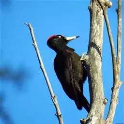 白腹黑啄木鸟,是啄木鸟科、黑啄木鸟属的中型鸟类,体长43-46厘米,头顶具长的红色羽冠,颚纹亦为红色,…