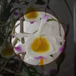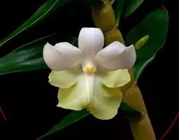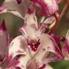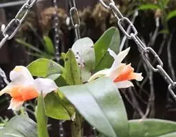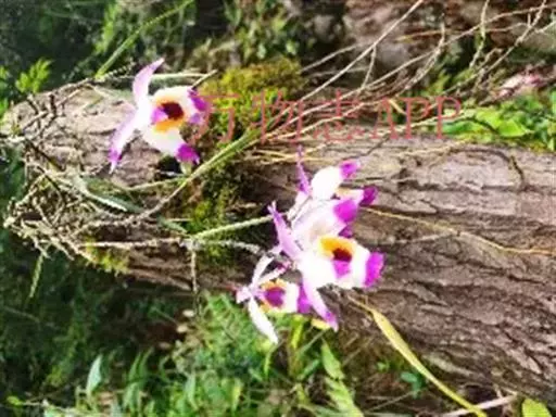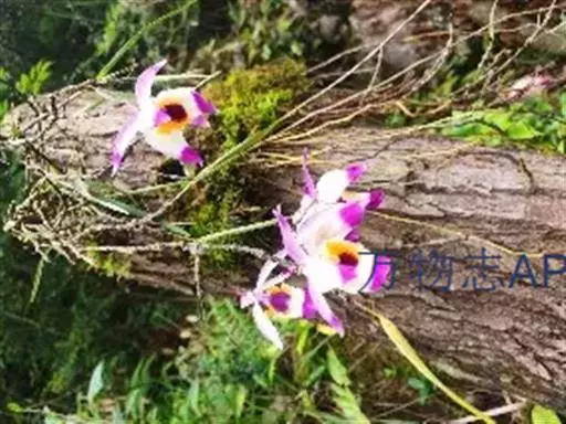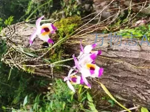 串珠石斛(学名:Dendrobium falconeri Hook.):茎悬垂,肉质,细圆柱形,近中部或中部以上的节间常膨大,多分枝,在分枝的节上通常肿大而成念珠状。叶薄革质,常2-5枚,互生于分枝的上部,狭披针形。总状花序侧生,常减退成单朵;花大,开展,质地薄,很美丽;萼片淡紫色或水红色带深紫色先端;花瓣白色带紫色先端,卵状菱形,长2.9-3.3厘米,宽1.4-1.6厘米,先端近锐尖,基部楔形,具5-6条主脉和许多支脉;唇瓣白色带紫色先端,卵状菱形。花期5-6月。
