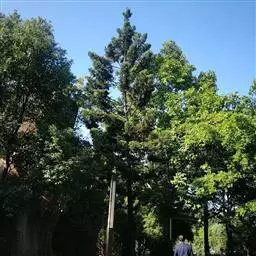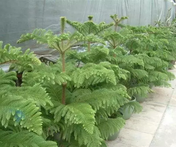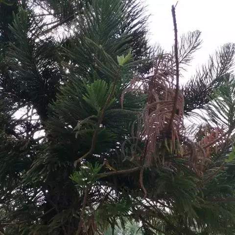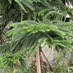 异叶南洋杉(学名:Araucaria heterophylla (Salisb.) Franco)是南洋杉科南洋杉属植物,乔木,在原产地高可达50米以上,树干通直,树皮暗灰色,树冠塔形,叶二型:钻形,光绿色,叶片弯曲,通常两侧扁,上面具多数气孔线,有白粉,树及花果枝上的叶排列较密,微开展,基部宽,先端钝圆,雄球花单生枝顶,圆柱形。球果近圆球形或椭圆状球形,苞鳞厚,种子椭圆形,稍扁,两侧具结合生长的宽翅。