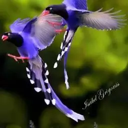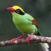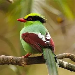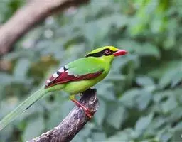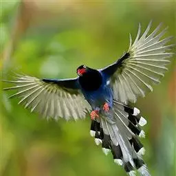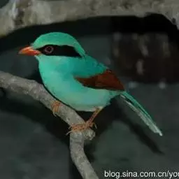 蓝绿鹊:中型鸟类,共有5个亚种。体长36-38厘米。尾长,嘴、脚红色。通体羽色主要为草绿色,…