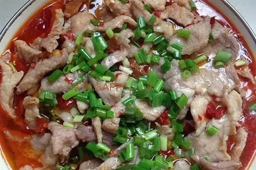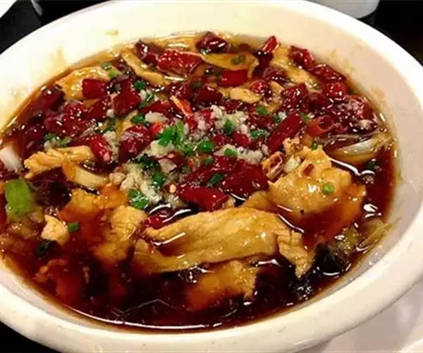水煮肉片(Poached spicy slices of pork),是一道地方新创名菜,起源于自贡,发扬于西南,属于川菜中著名的家常菜 。因肉片未经划油,以水煮熟故名水煮肉片。