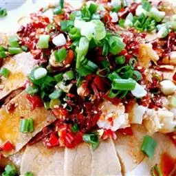 5.用植物油烧开,淋在肉片上,即可使麻、辣、浓香四溢。