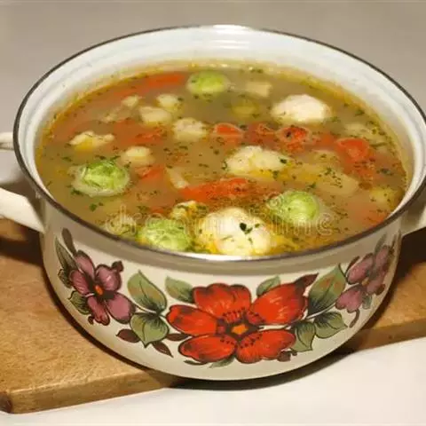6.加入肉汤 ,烧沸。