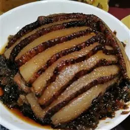 梅菜扣肉,汉族传统名菜,属客家菜 。制作材料有五花肉、梅菜、葱白、姜片等。