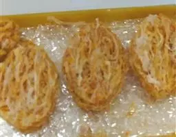 1.将鸡蛋清和淀粉调料调匀成糊,涂抹在肉片上。