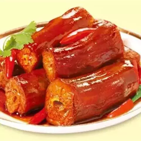 16.乘热淋在肉片上即可。
