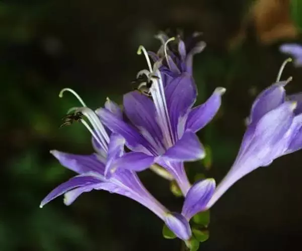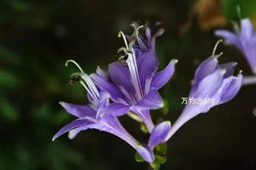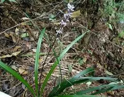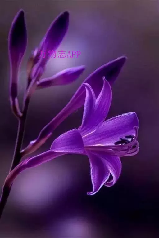 根状茎粗约1厘米,有长的走茎。叶矩圆状披针形、狭椭圆形至卵状椭圆形,长10-15厘米,宽2-6(-7)厘米,先端近渐尖,基部楔形或钝,具5-8对侧脉;叶柄长5-26厘米,由于叶片下延而至少上部具狭翅,翅每侧宽2-5毫米。花葶高33-55厘米,具几朵至二十几朵花;苞片近宽披针形,长5-7毫米,膜质;花单生,长4-4.5厘米,盛开时从花被管向上逐渐扩大,紫色;花梗长5-10毫米;雄蕊稍伸出花被之外,完全离生。花期8月。