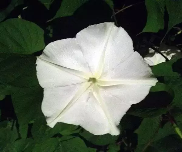 月光花的白色花朵形似满月,大而美丽,且在夜间开放,故得名。月光花生长很迅速,因此可作为引人注目的篱垣布景。