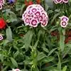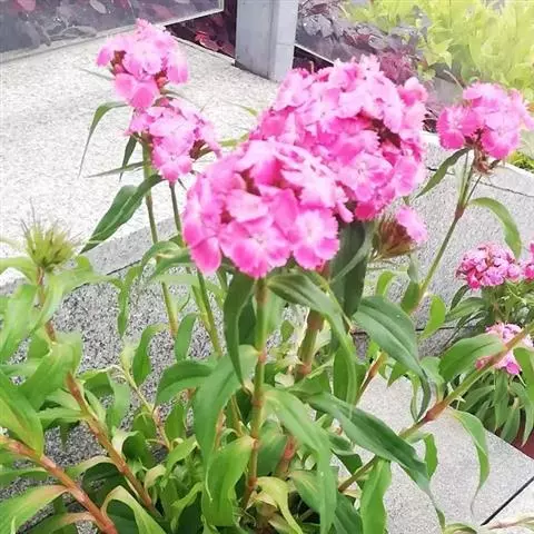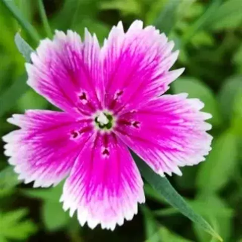 石竹,别名:兴安石竹、北石竹、钻叶石竹、蒙古石竹、丝叶石竹、高山石竹、 辽东石竹、长萼石竹、长苞石竹、林生石竹、三脉石竹,瞿麦草,拉丁文名:Dianthus chinensis L. 为双子叶植物纲、石竹科、石竹属多年生草本,高30-50厘米,全株无毛,带粉绿色。茎由根颈生出,疏丛生,直立,上部分枝。叶片线状披针形,顶端渐尖,基部稍狭,全缘或有细小齿,中脉较显。花单生枝端或数花集成聚伞花序;紫红色、粉红色、鲜红色或白色,顶缘不整齐齿裂,喉部有斑纹,疏生髯毛;雄蕊露出喉部外,花药蓝色;子房长圆形,花柱线形。蒴果圆筒形,包于宿存萼内,种子黑色,扁圆形。花期5-6月,果期7-9月。