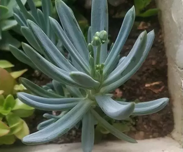 蓝松(Senecioserpe)菊科,千里光属,原生地位于南非南部沿海地区。在受到强光照射时,会变成绚丽的紫色。比起其它的多肉品种,更加耐热。要用透气性好的植料种植,普通泥土易导致根部腐烂。