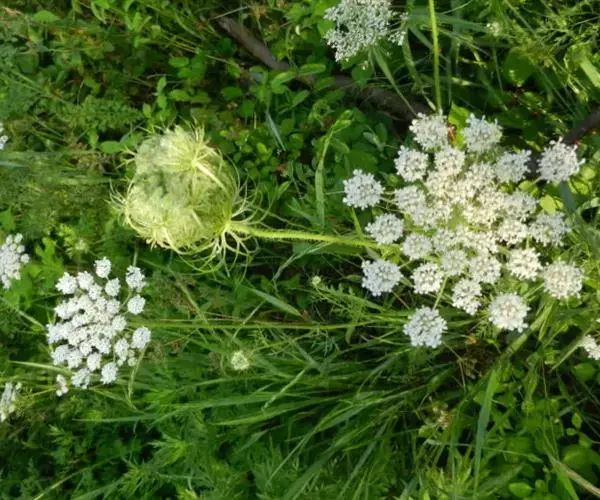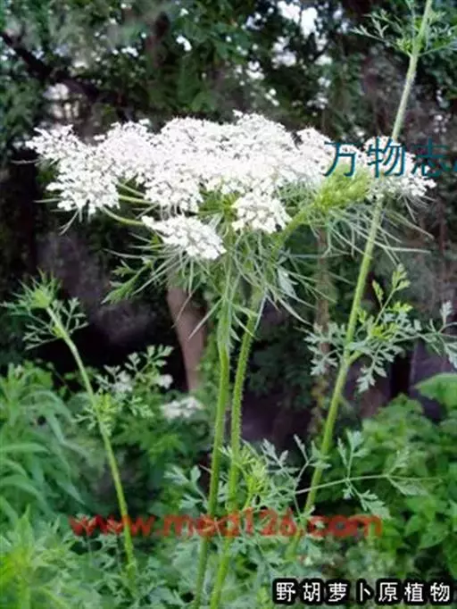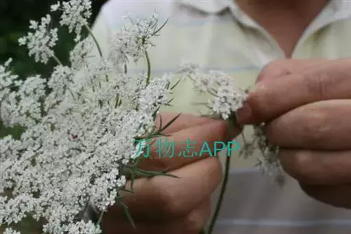 野胡萝卜(学名:Daucus carota L.)伞形目、伞形科、胡萝卜属。二年生草本,高15-120厘米。茎单生,全体有白色粗硬毛。基生叶薄膜质,长圆形,二至三回羽状全裂,末回裂片线形或披针形,顶端尖锐,有小尖头,光滑或有糙硬毛;叶柄长3-12厘米;茎生叶近无柄,有叶鞘,末回裂片小或细长。复伞形花序,花序梗长10-55厘米,有糙硬毛;总苞有多数苞片,呈叶状,羽状分裂,少有不裂的,裂片线形;伞辐多数,结果时外缘的伞辐向内弯曲;小总苞片5-7,线形,不分裂或2-3裂,边缘膜质,具纤毛;花通常白色,有时带淡红色;花柄不等长。果实圆卵形,棱上有白色刺毛。花期5-7月。