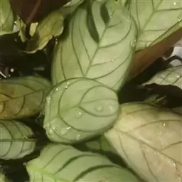 猫眼竹芋 :竹芋科,肖竹芋属多年生常绿草本观叶植物。株高可达100厘米,叶片长椭圆形,头状花序,…