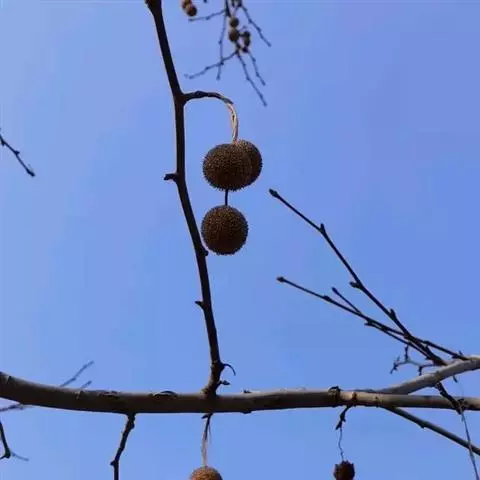 公元401年,印度高僧鸠摩罗什到中国传播佛教,携带三球悬铃木,种植于西安附近的户县古庙前,至今尚存树干得有4人才能合抱。这是中国最早引种的悬铃木了。