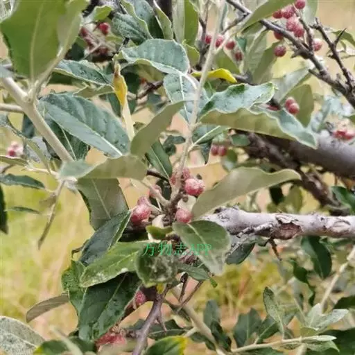 牛奶子,别名:剪子果、甜枣、麦粒子,拉丁文名:Elaeagnus umbellate Thunb.属于胡颓子科、胡颓子属落叶直立灌木,小枝甚开展,多分枝,幼枝密被银白色和少数黄褐色鳞片,有时全被深褐色或锈色鳞片,老枝鳞片脱落,灰黑色;芽银白色或褐色至锈色。叶纸质或膜质,椭圆形至卵状椭圆形或倒卵状披针形,成熟后全部或部分脱落,干燥后淡绿色或黑褐色,下面密被银白色和散生少数褐色鳞片,果实几球形或卵圆形,幼时绿色,被银白色或有时全被褐色鳞片,成熟时红色;果梗直立,花期4-5月,果期7-8月。 果实、叶、根具有治泻痢、消渴、喘咳、祛风、利湿、月经过多和风湿关节等药用价值;此外,还可作为提取香精、工业用油、人造纤维板、植物源农药等的原材料。