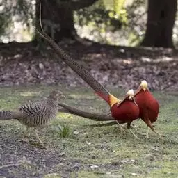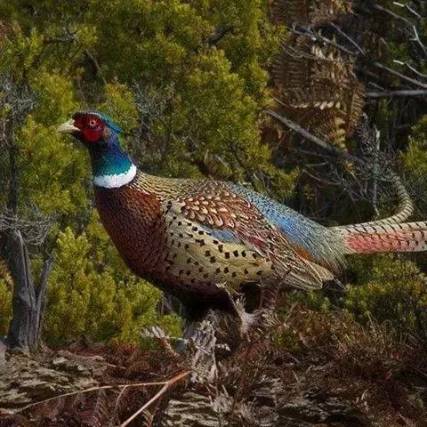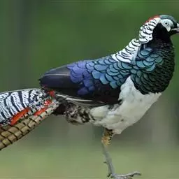 白颈长尾雉:大型鸡类,体长81厘米,体型大小和雉鸡相似。雄鸟头灰褐色,颈白色,脸鲜红色,其上后缘有…