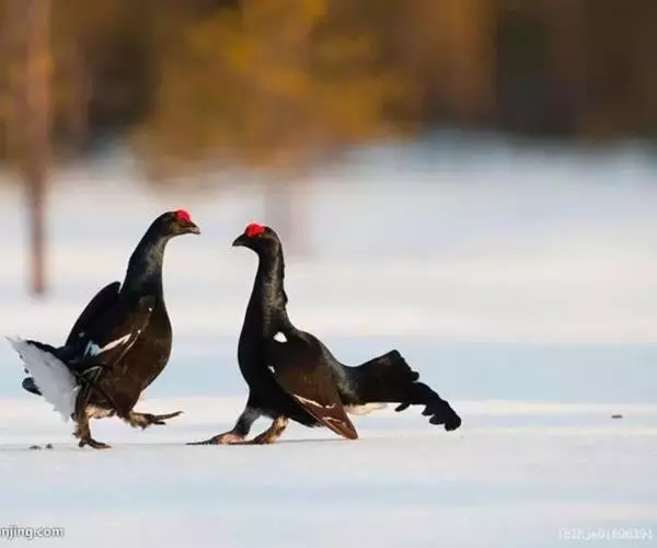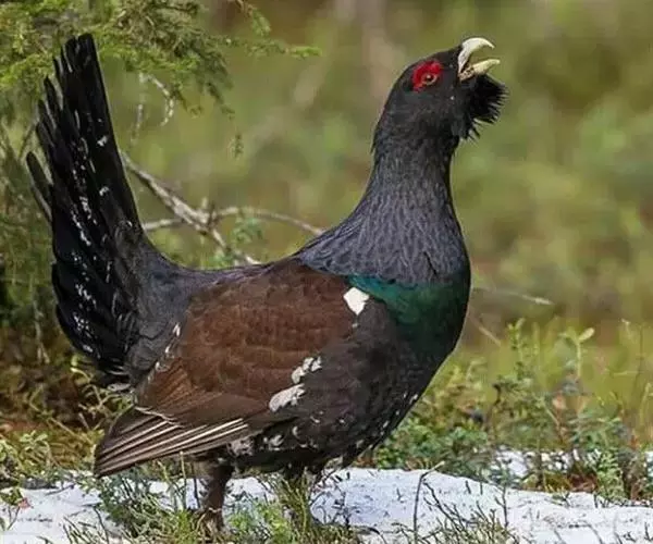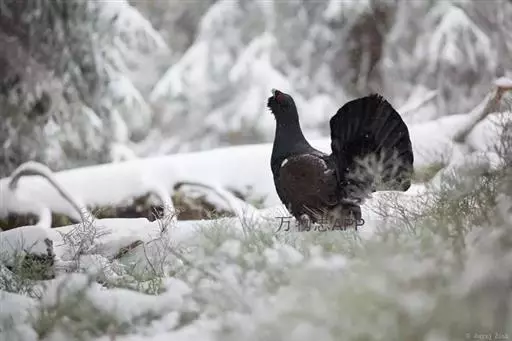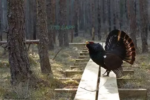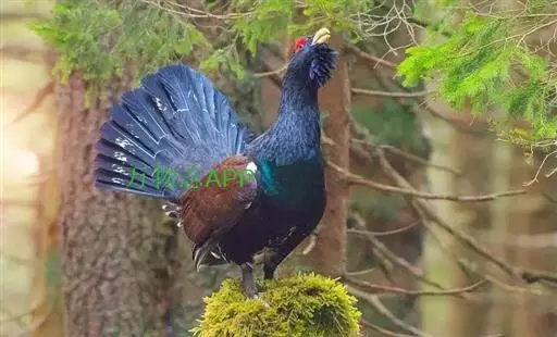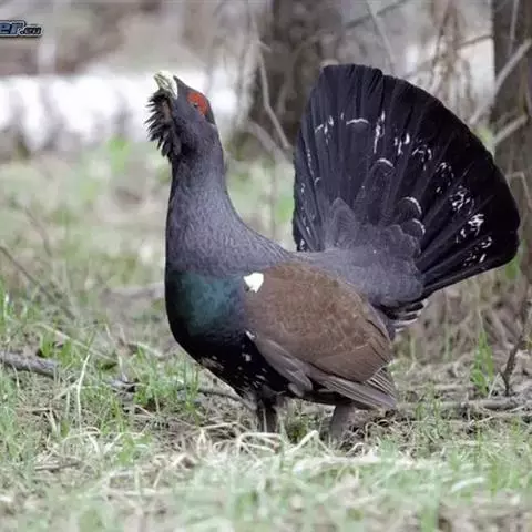 松鸡(学名:Tetrao urogallus):是走禽,共有12个亚种。雄鸟体长87-125厘米,体重3600-5050克;雌鸟体长74-90厘米,体重为1350-2000克。体结实,喙短,呈圆锥形,适于啄食植物种子;翼短圆,不善飞;脚强健,具锐爪,善于行走和掘地寻食;鼻孔和脚均有被羽,以适应严寒。雄性羽色鲜艳,具大的肉冠和美丽的羽毛;跗蹠后缘具距。