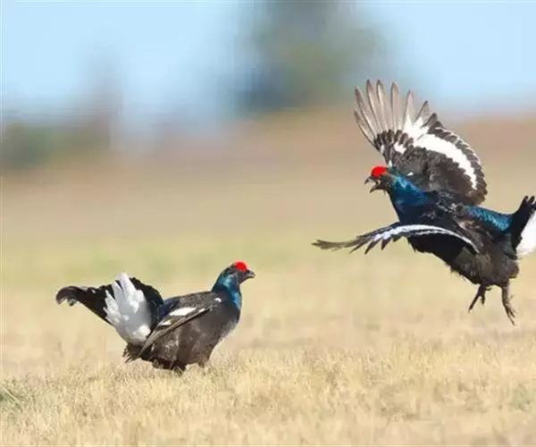 雌鸡在雄鸡开始表演活动后来到求偶场,从早晨至中午这段时间是雄鸟表演的高峰期,但主要在早晨。单个或几只雌鸟,先从求偶场处飞到求偶场中的落叶松树上并四处观望,约10分钟后,飞到一雄鸟领域中的树上,几分钟后落到该雄鸟附近。雌鸟的到来激起雄鸟表演活动增强。这时雄鸟常选择领域中最开阔的隆起地带活动,尽力引起雌鸟注意。