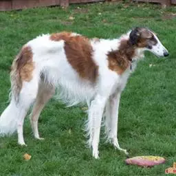白色或白色带有灰色、红褐色或不同深浅的茶色斑纹。不同大小的斑纹可以出现在耳朵、头部(包括面具)、尾巴、及身体(很少的污迹)。底毛可以是白色或深色。上面描述的各种颜色和斑纹(位置)都是这一品种所特有的,没有好坏之分。缺陷:披毛的斑纹超过身体的1/3。
