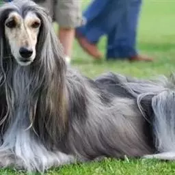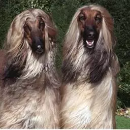 阿富汗猎犬全身披丝绢状的长毛,毛色鲜艳,呈多种颜色,背中线附近毛短,…