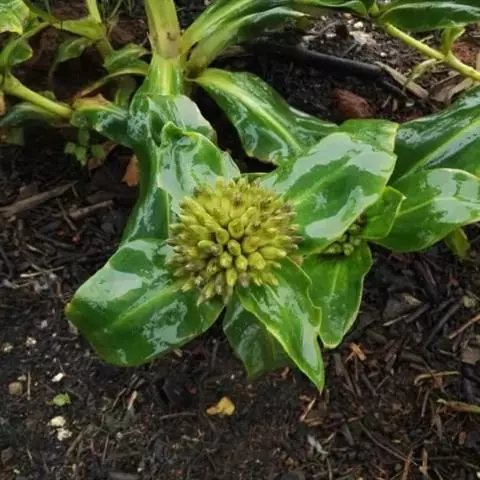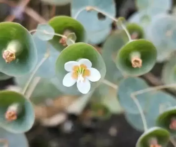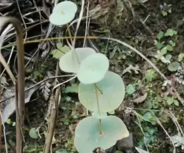 一年生草本,高10-30厘米,全株光滑无毛。茎直立,黄绿色,圆柱形,多分枝,枝柔弱。基生叶对生,具短柄,卵形;中上部茎生叶呈圆形的贯穿叶,直径7-20毫米,上面绿色,下面灰绿色,具突出的网状脉纹。复聚伞花序呈假二叉状分枝,具多花,有叶状苞片;花5数;花萼钟状,长5-6毫米,萼筒膜质,萼齿甚小,不整齐,三角形,长1-1.5毫米;