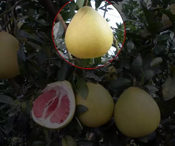 果圆球形,扁圆形,梨形或阔圆锥状,横径通常10厘米以上,淡黄或黄绿色,杂交种有朱红色的,果皮甚厚或薄,海绵质,油胞大,凸起,果心实但松软,瓢囊10-15或多至19瓣,汁胞白色、粉红或鲜红色,少有带乳黄色;种子多达200余粒,亦有无子的,形状不规则,通常近似长方形,上部质薄且常截平,下部饱满,多兼有发育不全的,有明显纵肋棱,子叶乳白色,单胚。花期4-5月,果期9-12月。