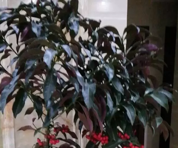 【湿度管理】 朱砂根 喜欢湿润或半燥的气候环境,要求生长环境的空气相湿度度在50~70%,空气相对湿度过低时下部叶片黄化、脱落,上部叶片无光泽。