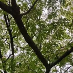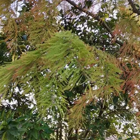 合欢树枯萎病是一种系统性传染病,对合欢树来说是最严重的病害。该病发生几率较大,幼苗及成品树都受到影响。其中,3-5年生树最易患枯萎病且发病速度快。另外,一些生命力弱的植株受此病影响,容易死亡。合欢枯萎病受气候条件、土质和地势、栽培环境及栽植管理的影响。高湿、多雨季节发病严重;土质粘重、地势低洼、排水不良,积水地易发病;移栽或修剪等管理过程中造成的伤口,会增加镰刀菌侵染机会。幼苗染病后,先是叶片变黄,然后根茎基部变软,常出现倒伏,最后全株枯死。成株染病的话,先是1-2根枝条出现症状,病枝上的叶片萎蔫下垂,叶色呈淡绿色或淡黄色,后期干枯脱落,随后部分枝条开始干枯,逐步扩展到整株,至死亡。截开主干断面,可见一整圈变色环,树根部断面呈褐色或黑褐色。