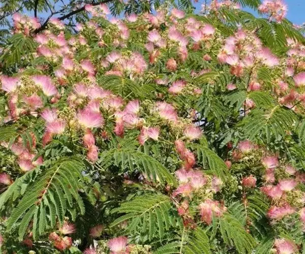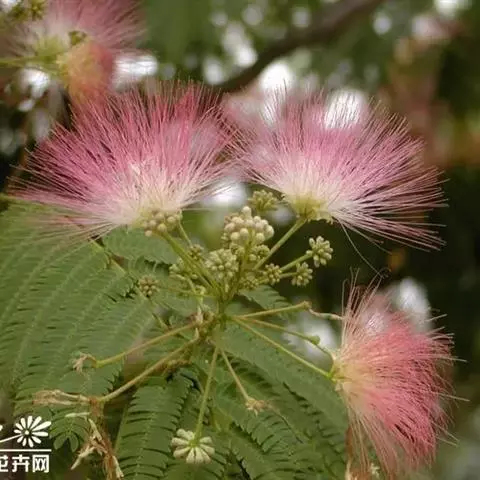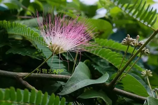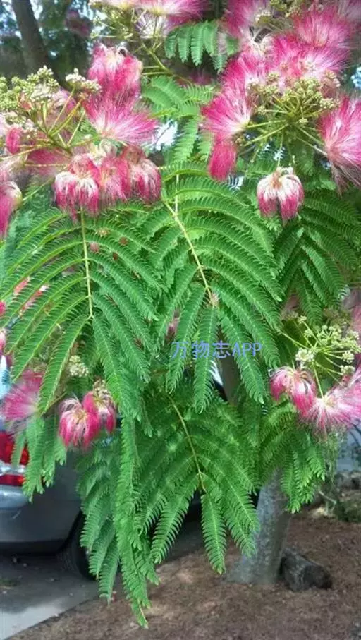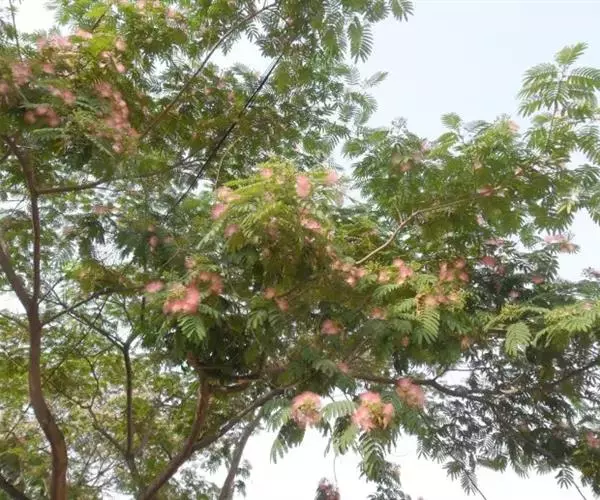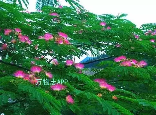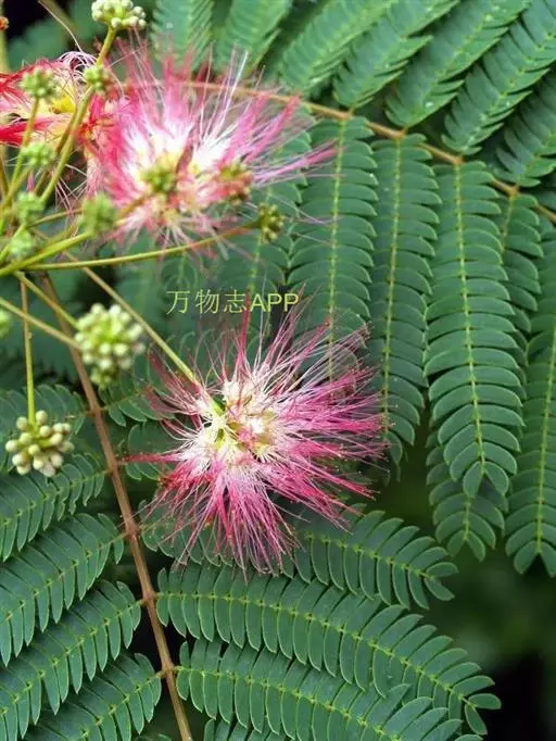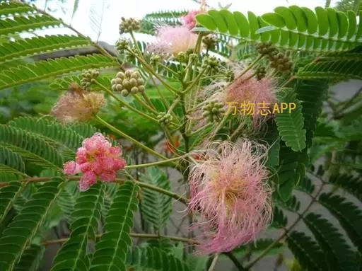 合欢,落叶乔木,高可达16m。树干灰黑色;嫩枝、花序和叶轴被绒毛或短柔毛。